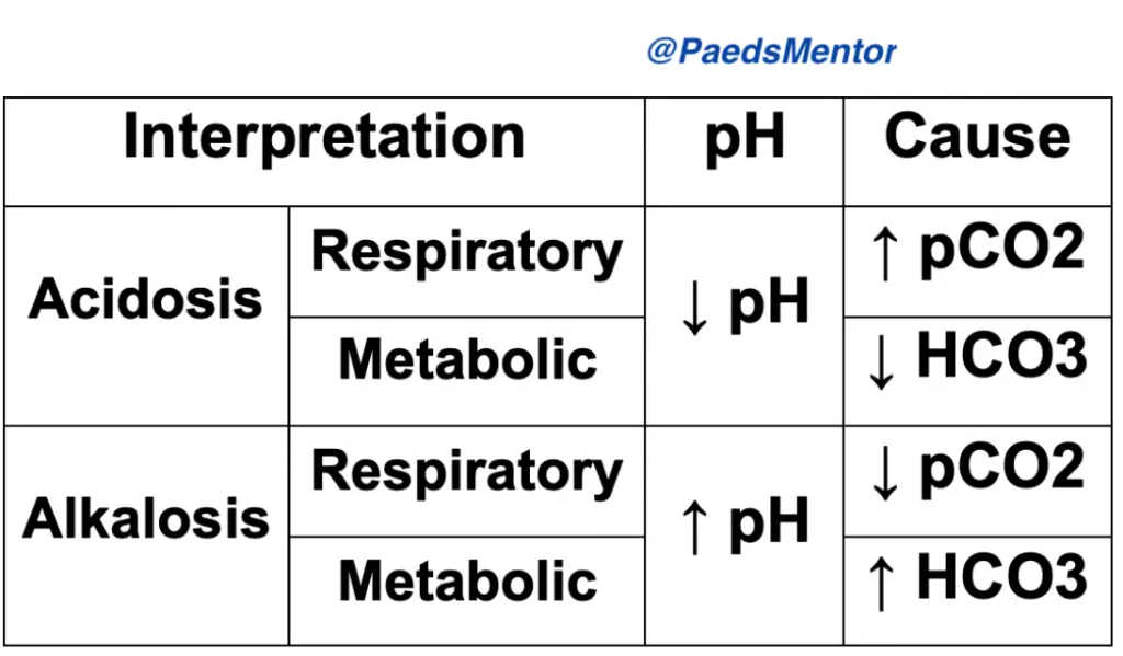 Age-Specific Ranges: Normal values, especially for pH and PaCO2, can differ slightly in neonates and young infants compared to older children and adults. For example, neonates often have a slightly lower PaCO2 and HCO3− due to their higher respiratory rate.