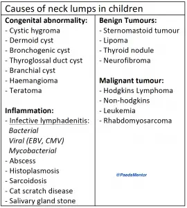 Neck lumps in children can be broadly categorised by their aetiology.