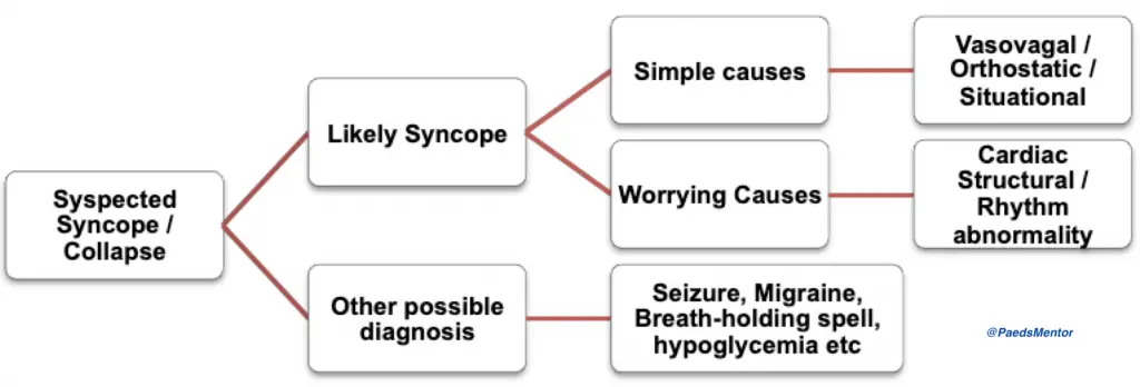 Syncope can be broadly classified into simple (benign) and more worrying (pathological) causes.